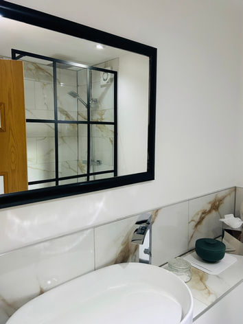 An intimate double room, with king size bed, modern bathroom with walk in shower, fluffy towels, dressing gowns and Pascal Morabito toiletries. Table with two Eames style chairs, flat screen TV, USB charging ports, coffee and tea facilities, Nespresso coffee machine,